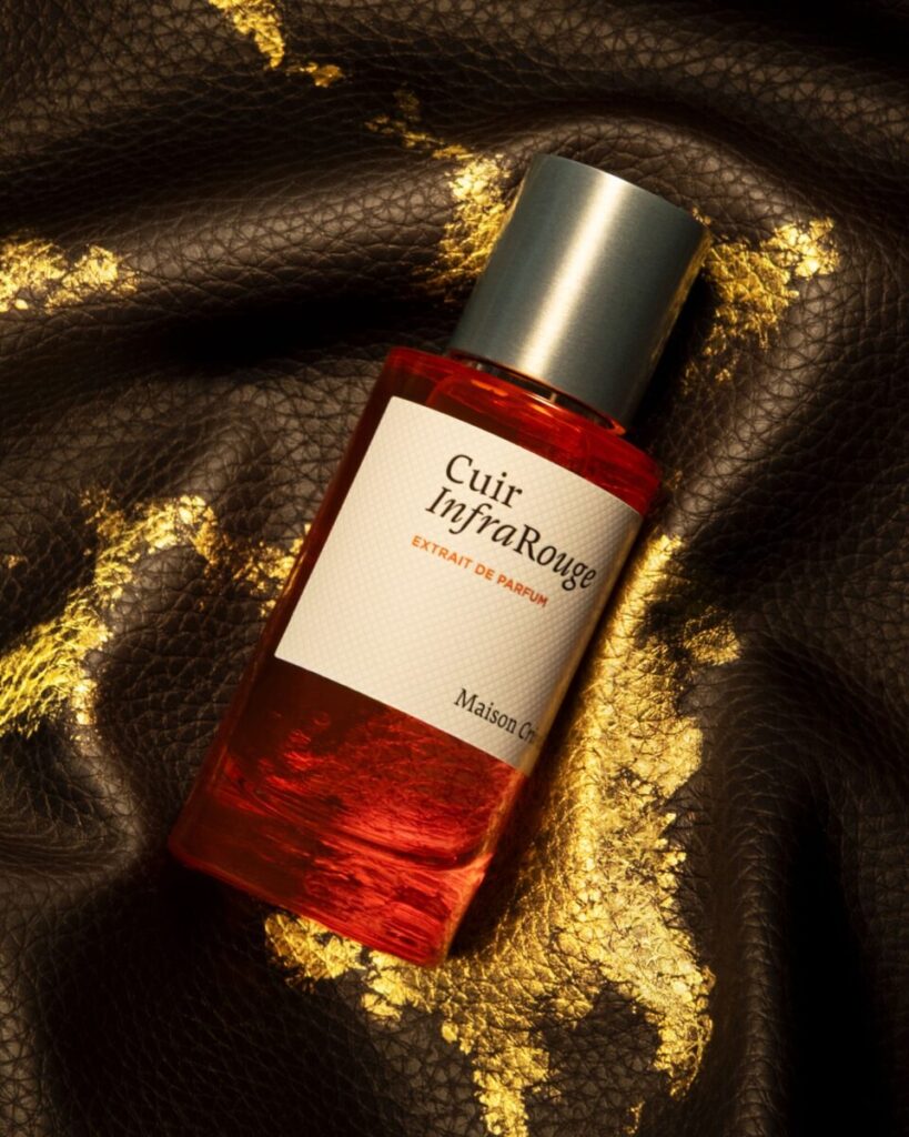Cuir Infrarouge predstavlja “uvećanu kožu”: miris rođen iz sukoba očekivanog i iznenađujućeg. U njemu se mekoća i snaga, svjetlo i tama, prepliću uz ritam glazbe i svjetlosti, dajući kožnatom akordu neočekivanu blistavost.