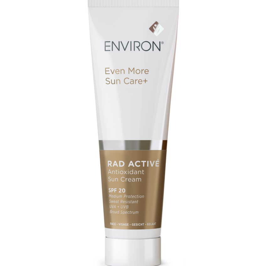 Svijet zaštite od sunca obilježen je dezinformacijama, komunikacijom temeljenom na strahu i pretjeranim naglaskom na visoke SPF vrijednosti, no Environ i dalje zagovara uravnotežen pristup usmjeren na zdravlje kože. Širokospektralna zaštita RAD ACTIVÉ s umjerenim SPF-om (SPF 20), otporna na znojenje i potkrijepljena klinički potvrđenom antioksidativnom obranom, holistički djeluje na UV-inducirani oksidativni stres i fotooštećenja, istodobno smanjujući nepotrebno kemijsko opterećenje kože.