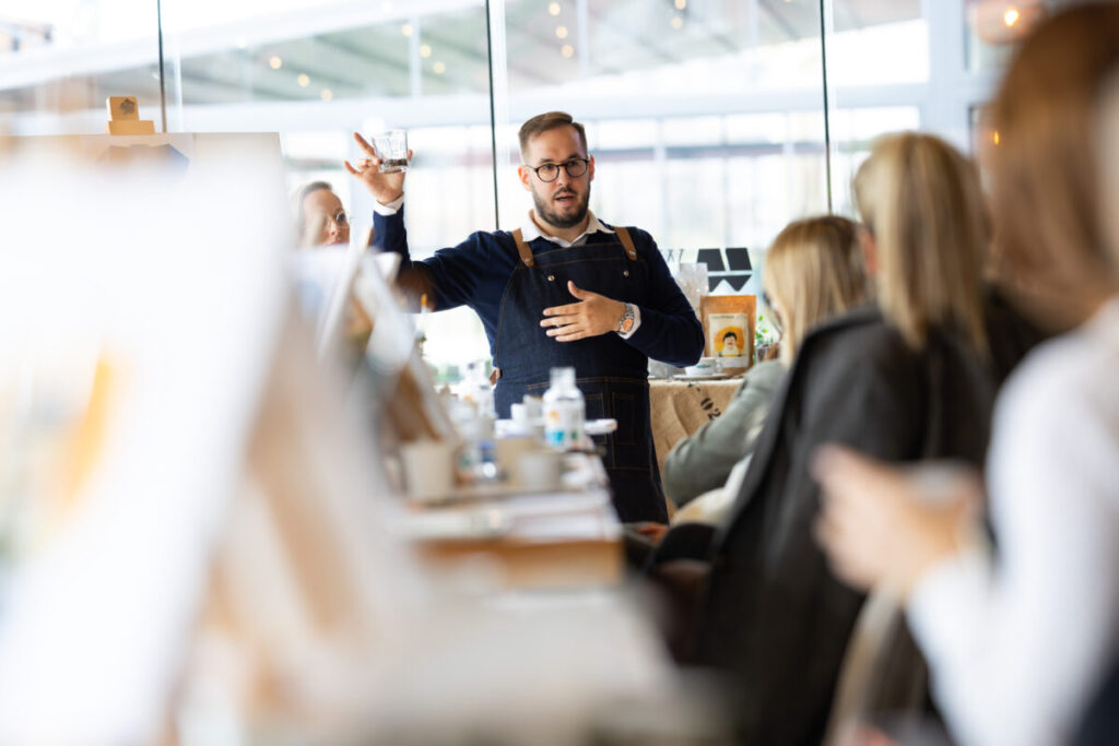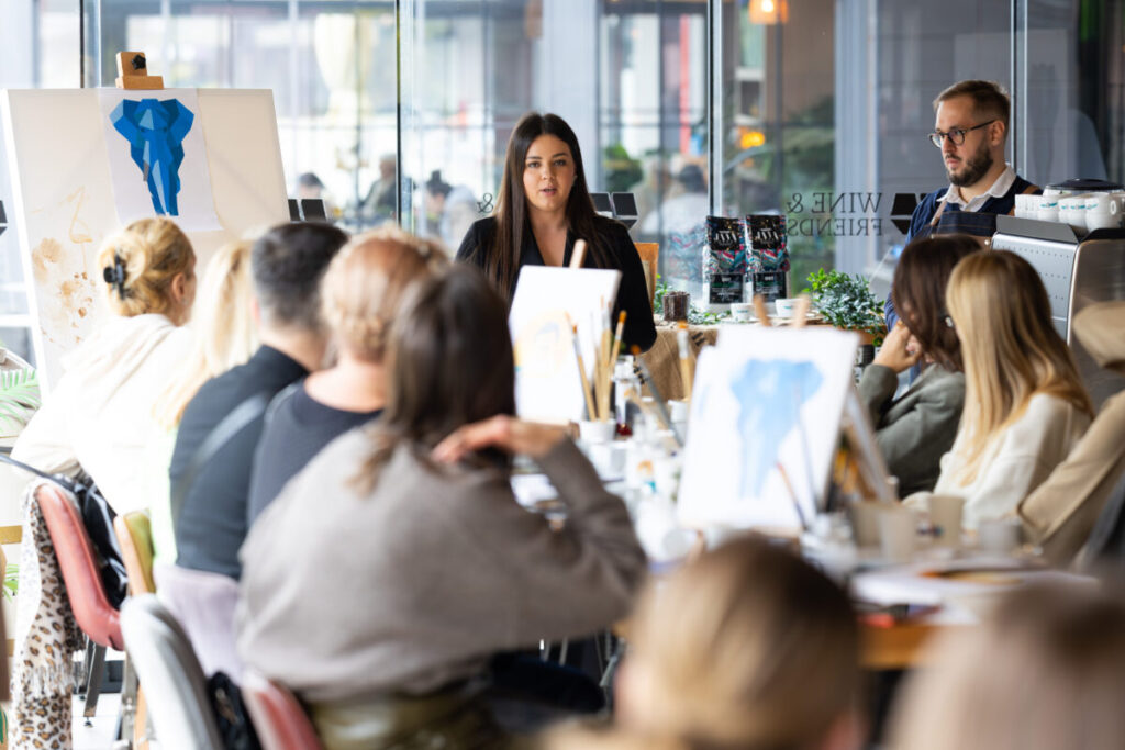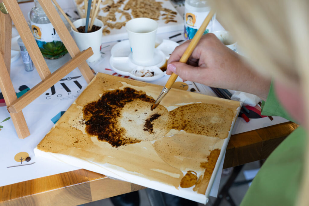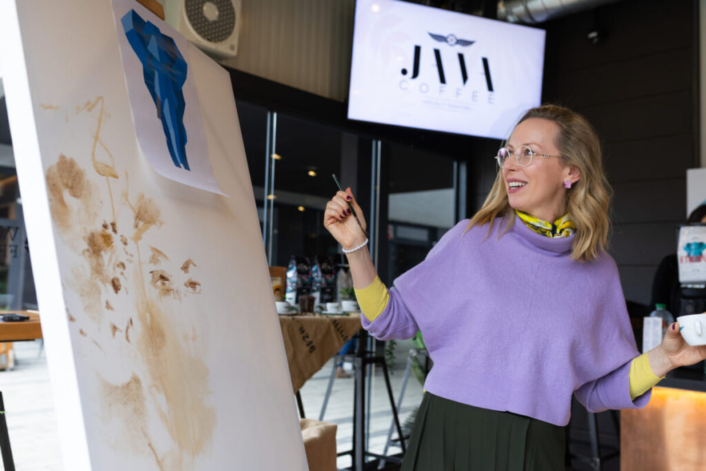 Predstavljanje brenda u Wine and Friends baru u Zagrebu upotpunjeno je intimnom slikarskom radionicom nadahnutom kavom, pod vodstvom umjetnice i pedagoginje Anite Genc. Sudionici su stvarali umjetnička djela oslikana kavom, istražujući kako se mirisi i okusi mogu pretočiti u boju, potez i ritam.