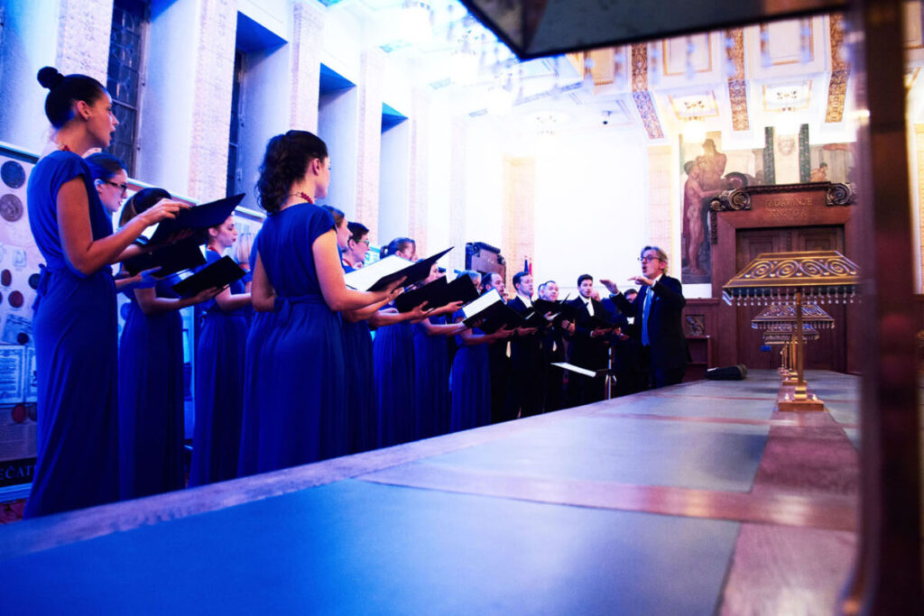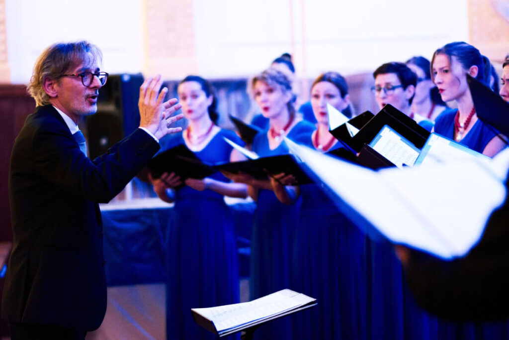 Podsjetivši publiku na onu prepoznatljivu snagu i emociju zbog kojih je tijekom godina postao jedan od vodećih vokalnih ansambala u regiji, zbor je u glazbenoj završnici večeri stupio na pozornicu i program zaokružio trima skladbama izvedenima bez prekida i pljeska, u sabranoj koncentraciji usmjerenoj na zvuk: Psalam 104 estonskog skladatelja Cyrillusa Kreeka, prožet elementima estonske folklorne glazbe oblikovanim u tonalitetnom i introspektivnom okviru; zatim Ubi Caritas proslavljenog norveškog skladatelja Ole Gjeila, skladba utemeljena na drevnom gregorijanskom koralu, koju autor nadilazi suvremenim harmonijskim i skladateljskim izrazom. Večer je zaključena izvedbom Bogoróditse Djévo Arva Pärta, kratke, ali iznimno sažete skladbe koja je svojom jasnoćom i svjetlom završnicom zaokružila glazbeni doživljaj večeri.