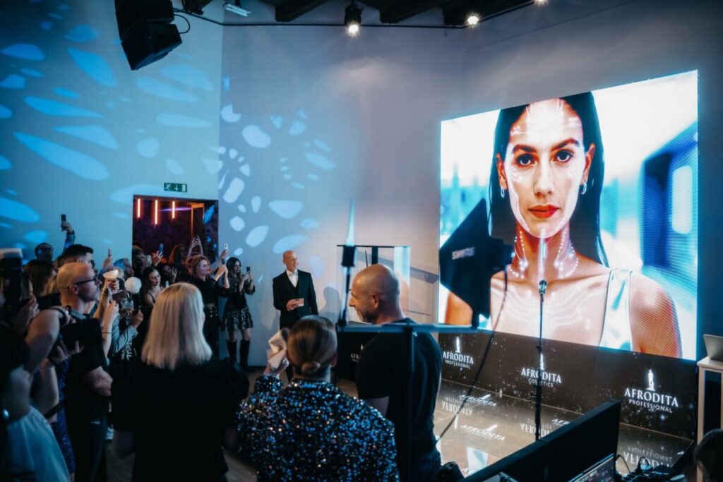 Svjetlosne instalacije, hologrami i robotske ruke simbolizirali su Afroditin put – od prvih ručno izrađenih krema do naprednih seruma koji danas postavljaju nove standarde u kozmetičkoj industriji.