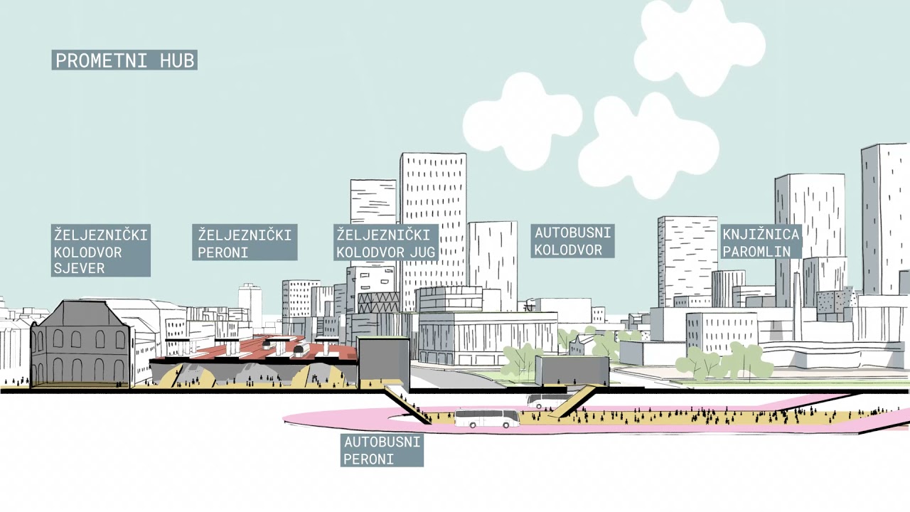 Kako dalje doznajemo, spomenuti koncept sugerira podizanje pruge, čime bi se olakšao prolazak vozilima i pješacima, te izmještanje Autobusnog kolodvora u podzemni prostor ispod parkirališta Paromlin. Time bi se južno od Glavnog kolodvora stvorilo novo prometno središte, dok bi ostatkom prostora dominirale nove pješačke površine. Uz to, sustavnim pristupom Gredelj bi tako mogao postati dio suvremene gradske jezgre uklopljen u njeno tkivo dok takav ambijent može ponuditi uvjete za kvalitetan život i rad stanovnicima svih dobi, životnih stilova i socijalnog statusa.