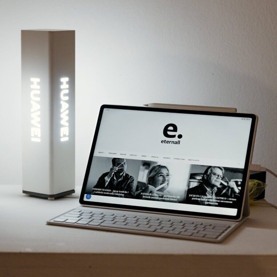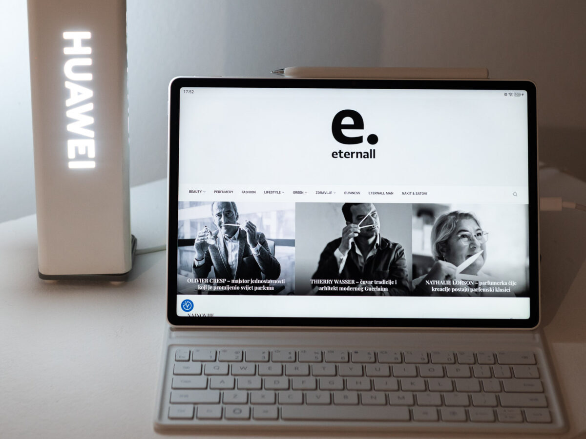 Posjetitelji izložbe ” KREATORI MIRISA – UMJETNICI NEVIDLJIVOG” su imali priliku testirati novi tablet Huawei pretražujući mogućnosti tableta ali i sadržaj na www.eternall.hr . ono što su svi mogli zaključiti da je tablet iznimno lagan i tanak opet vrlo brz i snažan tablet.