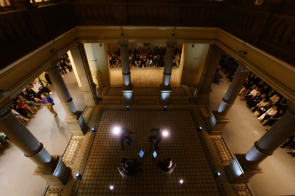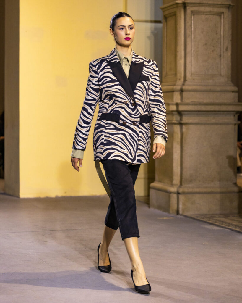 Tijekom revije publiku je pratila glazbena podloga u izvedbi gudačkog kvarteta uživo, čiji su dinamični barokni motivi i suvremene glazbene varijacije pratili ritam same kolekcije i dodatno naglasili njezinu slojevitost. Cijela je prezentacija bila koncipirana kao suvremen i jasan show, u kojem je odjeća ostala u prvom planu, ali unutar pažljivo izgrađene atmosfere koja je dodatno naglasila karakter kolekcije.