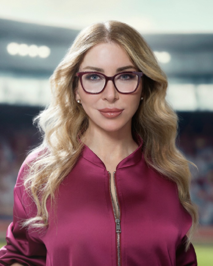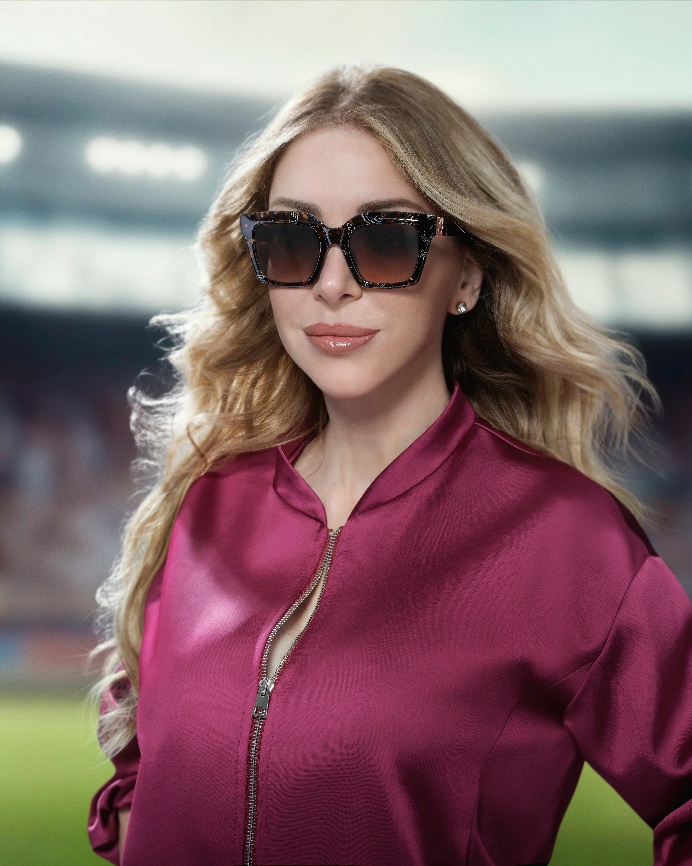 Godine 2019. Manuela je bila dio prve isključivo ženske sudačke trojke koja je sudila muško međunarodno finale – UEFA Superkup između Liverpoola i Chelseaja. Danas je sudački talent za DAZN, sudi King’s Cup te djeluje kao predavačica i trenerica u području liderstva i ženskog osnaživanja. Na fotografiji s dioptrijskim okvirima ističe se model Arantxa, prepoznatljiv po okrugloj acetatnoj silueti. Krilca s obojenim dekorativnim detaljima – zaštitnim znakom kolekcije – i ispis logotipa daju okviru osobnost i karakter, a model je dostupan i u manjoj veličini. U modelu Fiamma, koji dominira drugom fotografijom, pažnju privlači fasetirana fronta koja naočalama daje trodimenzionalnost. Model dolazi u više punih i transparentnih acetatnih varijanti, dok fotografirana verzija koristi nježne kromatske gradijente za naglašavanje dubine i dinamike. AY monogram, obogaćen emajlima u različitim nijansama, dodaje profinjen i prepoznatljiv detalj.